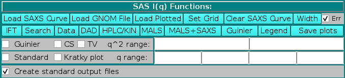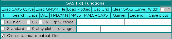 Previously computed csv-style I(q) vs. q files, such as those generated using the US-SOMO Batch Mode, can also be uploaded in the SOMO SAXS/SANS graphics window by pressing the Load SAXS (or Load SANS) button.