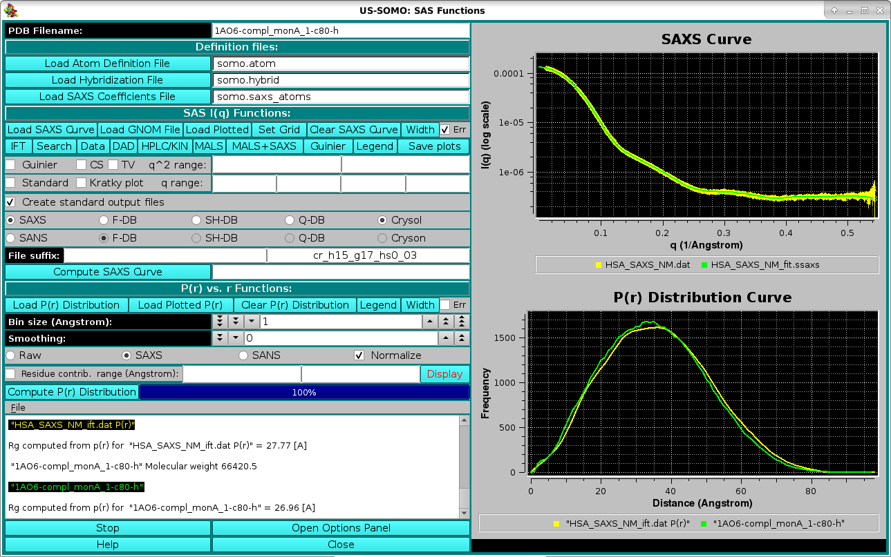 and will be saved in both the ".dat" and ".sprr" formats. For multiple IFT processing, the back-calculated I(q) vs. q curves will not be displayed in the SAXS Curve window. Summary ".txt" files, containg also the computation of the radius of gyration, will also be produced.